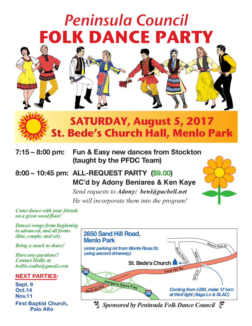 Federation members can add or update their upcoming dance events to the calendar by sending event details to events@folkdance.com