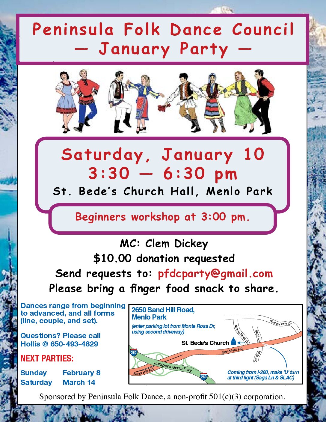Join the Peninsula Council Folk Dancers for an all-request dance party with Clem Dickey as MC! Invite your friends for a short beginner dancer workshop at 3pm.