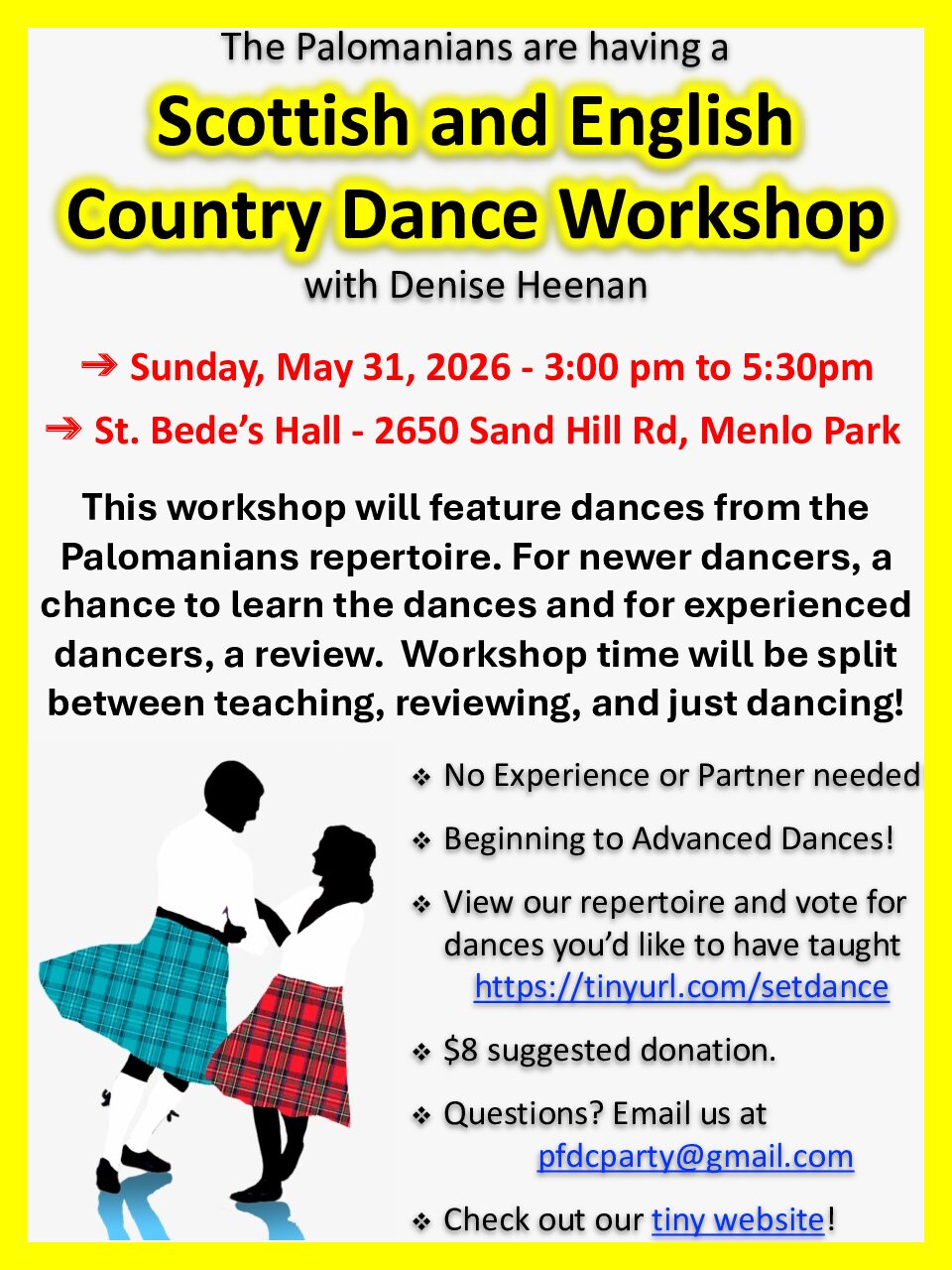 Join the Palomanians for a Scottish and English country dance workshop with Denise Heenan featuring dances from the Palomanians repertoire. For newer dancers, this is a chance to learn and […]