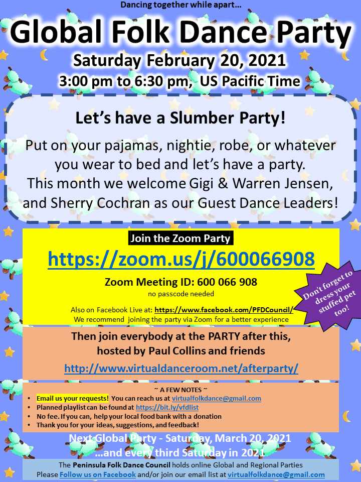 Enjoy an international folk dance party among friends online and ring in the New Year with non-stop dancing! IN YOUR HOME via Zoom! Sign in at 9:45 PM to chat! […]