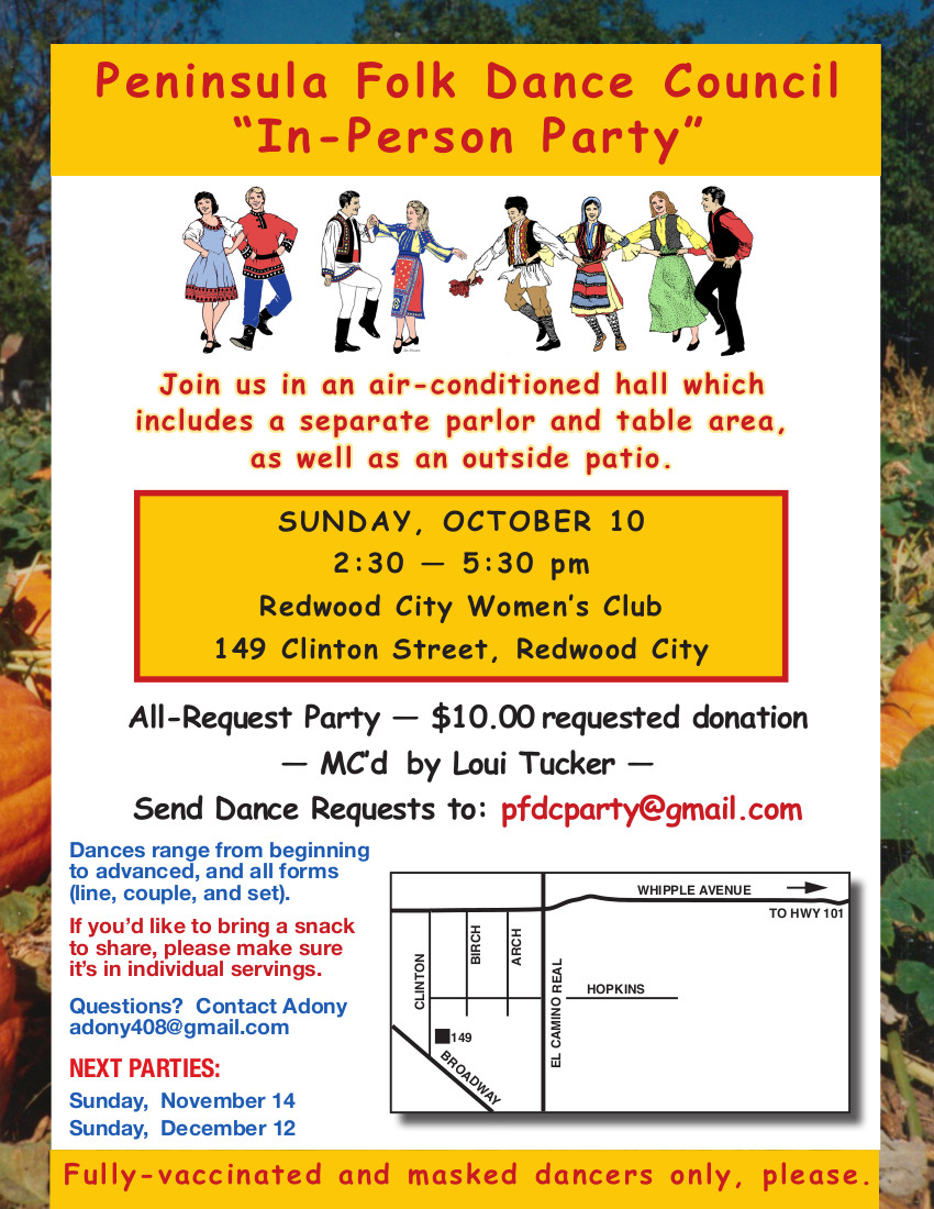 Join the Peninsula Council Folk Dancers for an all-request dance party, Loui Tucker as MC! We've missed dancing with you! We'll meet in the Redwood City Women's Club, an air-conditioned […]